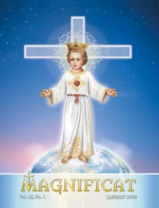 8 Vol. LX, No. 1 Magnificat there at once. And the Gospel says – the words are crucial – King Herod was troubled, and all Jerusalem with him. My dear brothers and sisters, beware! Is it for the glory of God that you become troubled? Normally, the glory of God does not trouble anyone. It fills men with zeal, but it does not trouble them. When we are willing to follow our King, we are not troubled. When the soul is troubled, that does not come from God. If the trouble is not from God, then where is it from? From the ego, the me. When the ego is offended, humans get troubled. Herod is troubled, all Jerusalem is troubled. The King has just been born, they are troubled. The Son of God comes into this world, they are troubled, because they are not disposed to follow Him. Conversely, when we are disposed to follow our King, to take the Royal Road, we are not troubled. The Kings were not troubled because they were upright souls. They went to find Jesus in the simplicity of their heart, without any devious thoughts. When we are motivated by all sorts of devious thoughts, when we take crooked paths, we are led by our pride. We are not disposed to follow our King. We are troubled by all sorts of little withdrawals into ourselves, often unacknowledged. These are almost always little vanities that we do not want to give up. When you feel trouble invading your heart, do not look to the side, and rather than blaming it on others, examine your heart well, under the eye of God: “My God, if I am troubled, it is because something in me is not in conformity with You, my King.” Our King gives us beautiful lessons, and it is interesting to point them out. In this royal year, you will go over His lessons. Here is another example from our dear Jesus: The Gospel9 tells us that one day, 9. Cf. Rev. Can. Alfred Weber, The Four Gospels in One (Éditions Magnificat: Mont-Tremblant, 2006), pp. 174-177. Narrative taken from St. Matthew 14:13-36; St. Mark 6:30-56; St. Luke 9:10-17; St. John 6:1-21. Jesus had spoken at length to the multitude about the Kingdom of God. The day had begun to decline, evening was at hand. Jesus had pity on the people, and He said to the Apostles: “They are hungry. Have you anything to give them to eat?” They found a boy who had five barley loaves and two fish. And with five barley loaves and two fish, Jesus fed the multitude. The Gospel relates that there were about five thousand men, not counting the women and children. There were a lot of people! Add at least as many women, and it amounts to ten thousand. And add as many children and we reach fifteen thousand. It is very likely there were many more, but let us keep this conservative figure of around fifteen thousand people. The crowd was enthusiastic. Jesus spoke to them of the Kingdom of God, as He knew how to do so well. He multiplied the loaves. The reaction of the multitude was to have Him proclaimed king. “See what He does! He is indeed the Son of David foretold by the prophets; He is the One we have been waiting for.” It is plainly written in the Gospel: the multitude wanted to proclaim Him king. Then Jesus tells His Apostles to leave: “Go, return to the other side of the lake.” Meanwhile, Jesus dismisses the crowd: “It is a little too late for ceremonies. You may withdraw.” He Himself retires to the mountain, and He prays. What a lesson! This is not the kind of King He wants to be, His Kingdom is not of this world.10 God permitted this entire scenario to teach us, we who are so vain. Most humans seize the slightest occasion of vanity to raise themselves up and enhance their image. We find profit in the least little vainglory, we feed on it. There are a few exceptions to this temptation, notably the Saints, including our deceased saints. I was telling our friends about Father Sylvio,11 10. Cf. St. John 18:36. 11.Father Sylvio du Cœur de l’Immaculée, O.D.M. (19342021), born Sylvio Salvas, who passed away in the odor of sanctity in Guadeloupe, where he was a missionary.